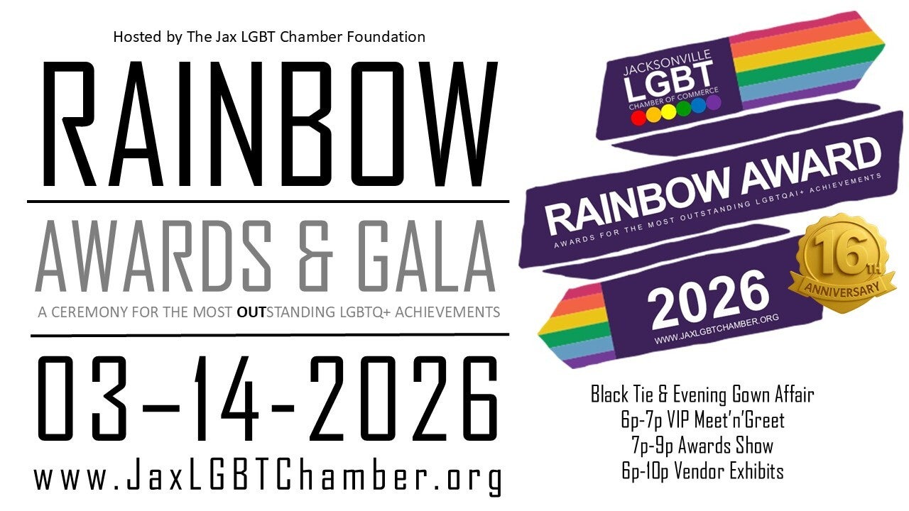Jax LGBT Chamber of Commerce proudly announces the 16th Annual Rainbow Awards & Gala, returning in March 2026 as the city’s premier LGBTQ+ formal event. This year’s gala will celebrate outstanding leadership, community impact, and cultural contributions across Jacksonville’s LGBTQ+ community.